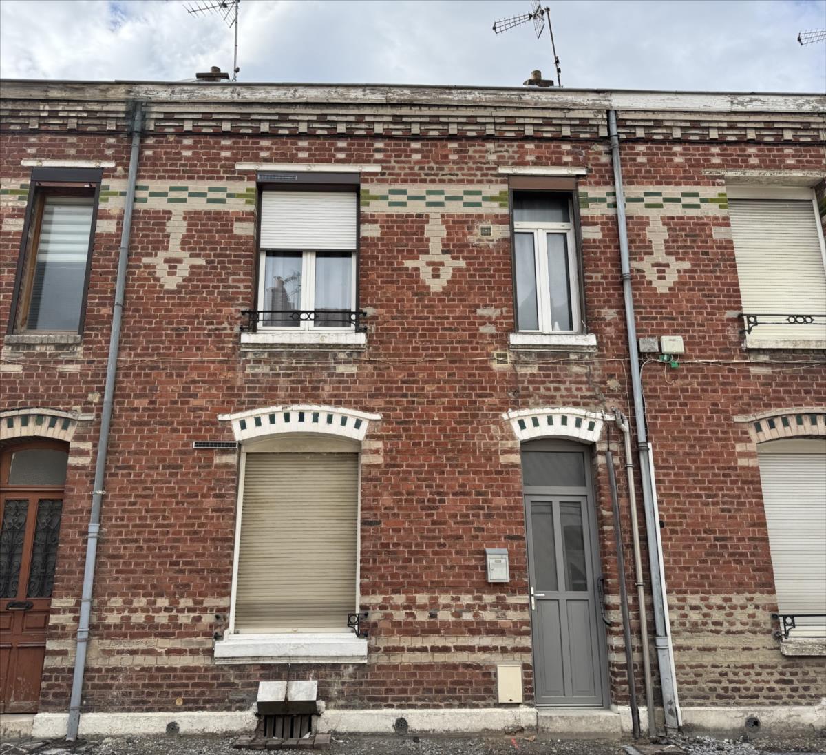 MAISON mitoyenne en briques comprenant :Au RDC : entrée centrale, salon, séjour, cuisine, WC Au 1er étage : 2 chambres, salle de doucheAu 2ème étag...