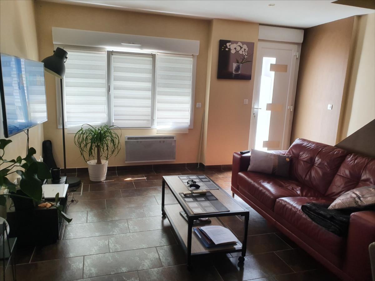 Au RDC : salon/séjour avec cuisine équipée ouverte, WC