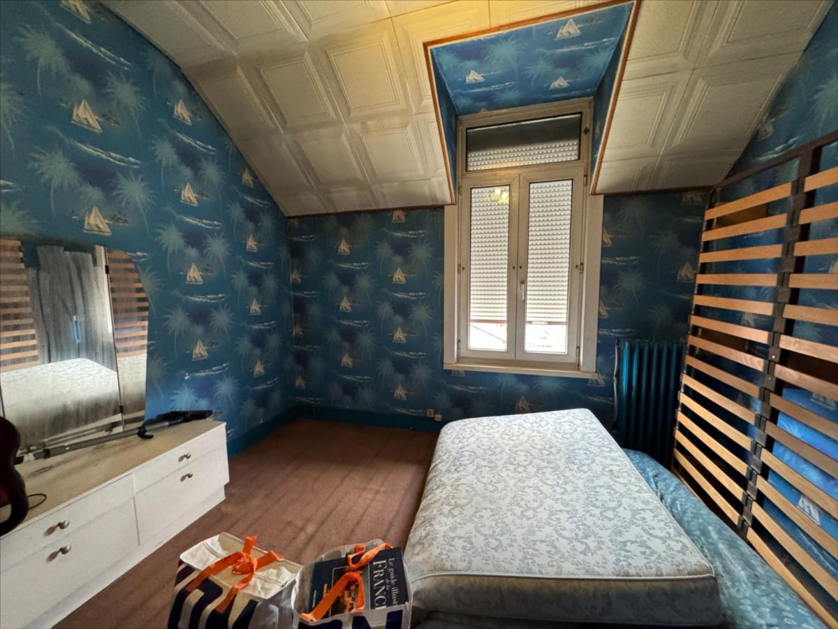 A l'étage : palier, 2 chambres, salle de douche.