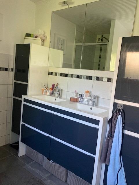 A l'étage : palier, 2 chambres, un bureau, WC avec lave-mains