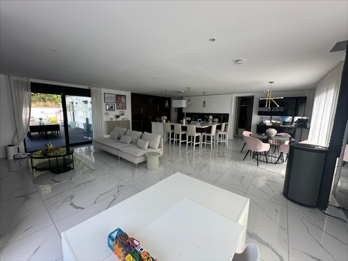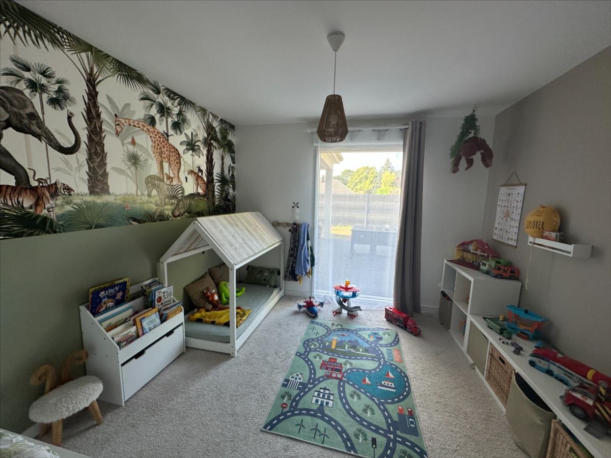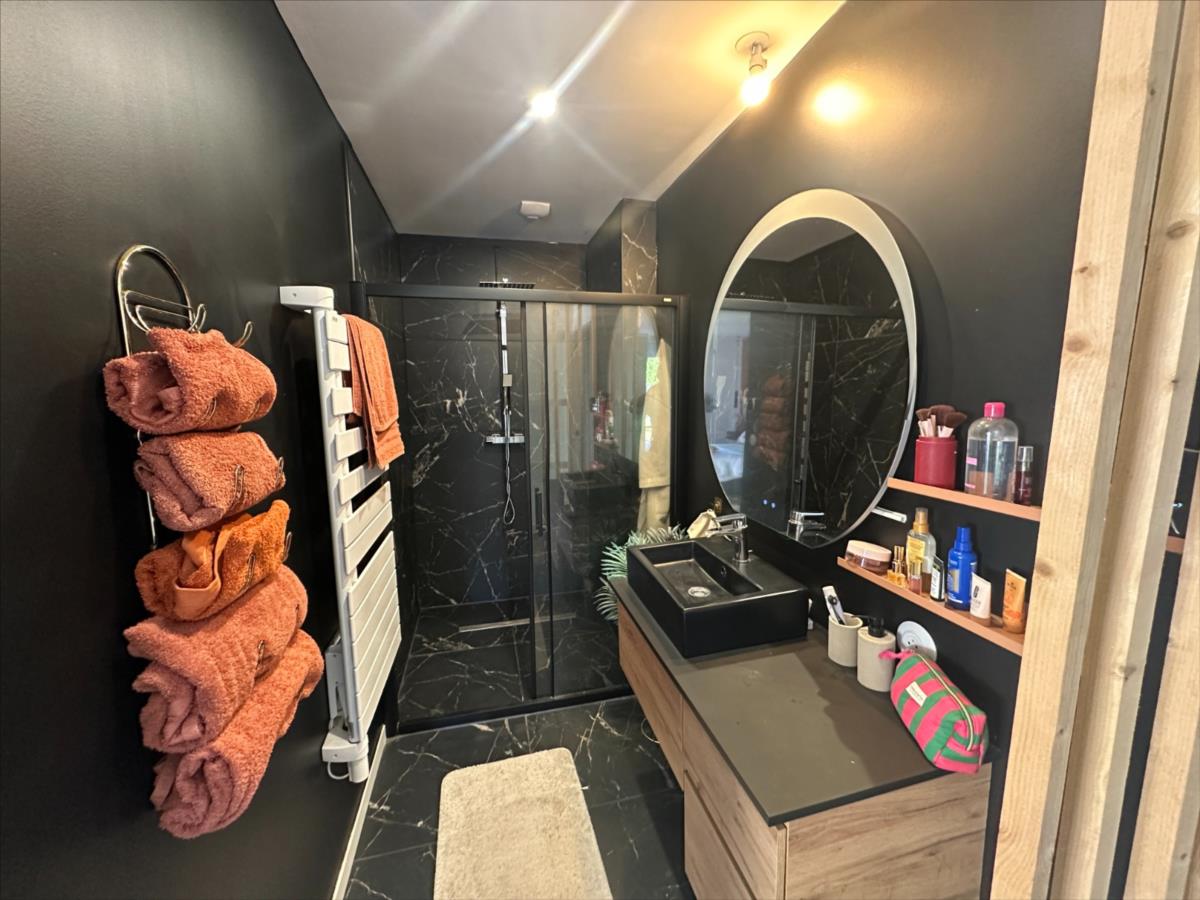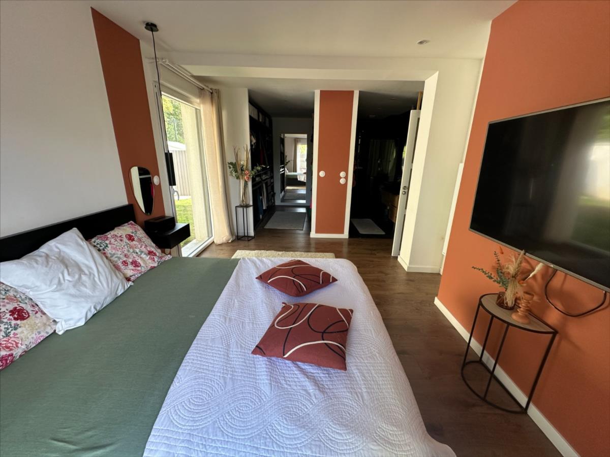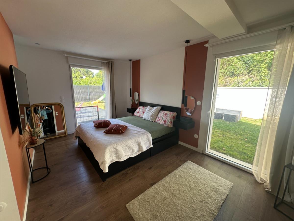 Entrée, cuisine équipée ouverte sur salon/séjour, 4 chambres dont une suite parentale avec salle de douche et dressing, salle de bains, WC.