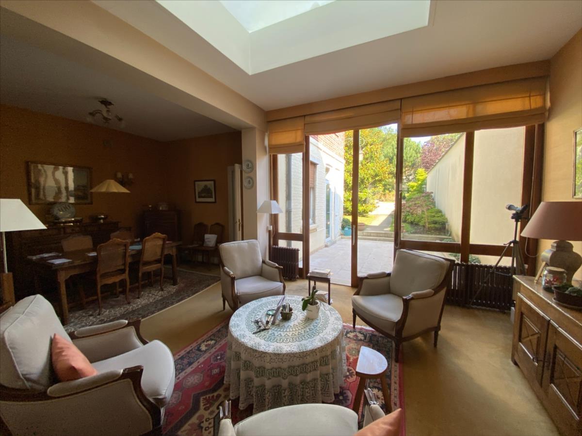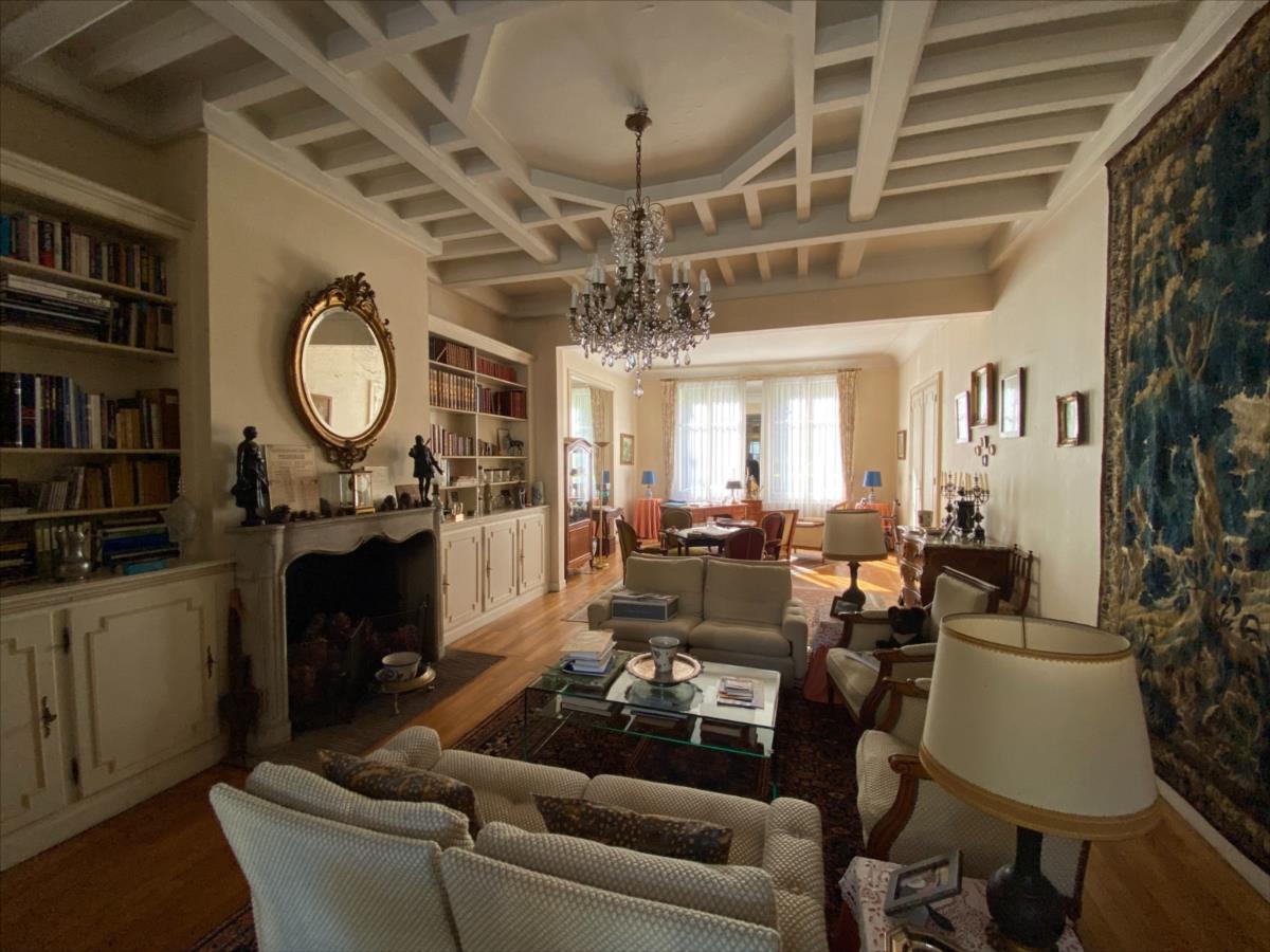 Au RDC : hall d'entrée, salon avec cheminée, séjour, petit salon, cuisine équipée, WC avec lave-mains ;